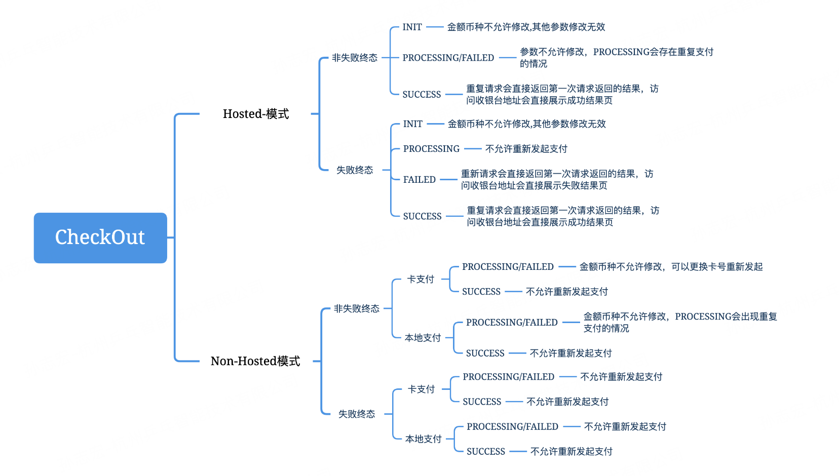- 如果商户不希望同一笔支付订单发生多次支付请求,那么支付接口中同一笔支付订单的requestId传一样的即可就只允许一次支付请求(仅限Non-Hosted模式)